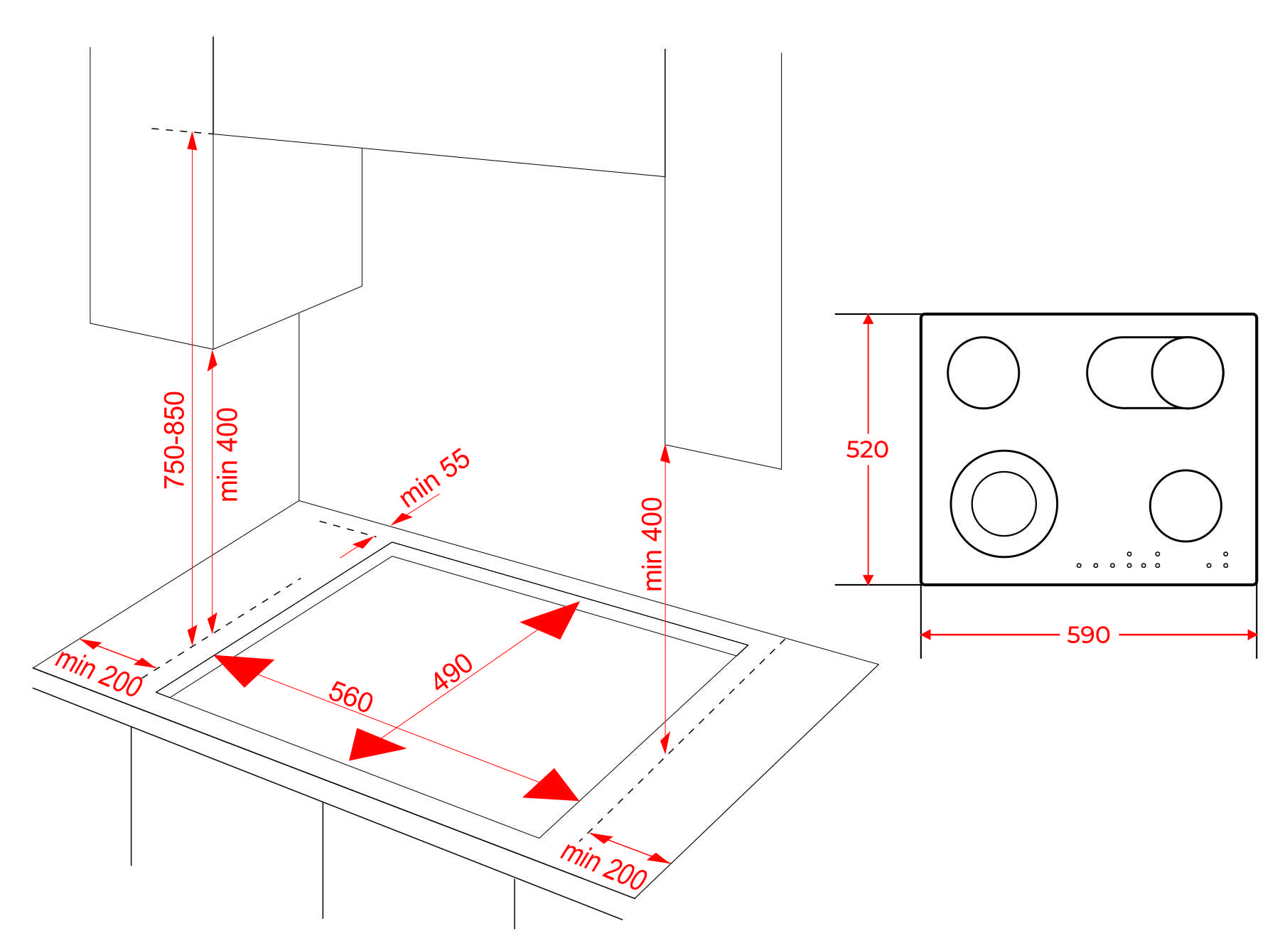 Передняя левая, кВт1,1/2,2Передняя правая, кВт1,2Задняя правая, кВт1,1/2,0Задняя левая, кВт1,2Количество и тип объединения зон2Передняя левая, мм170/230Задняя левая, мм165Передняя правая, мм165Задняя правая, мм165/270Количество и тип зон нагрева4Технические характеристики