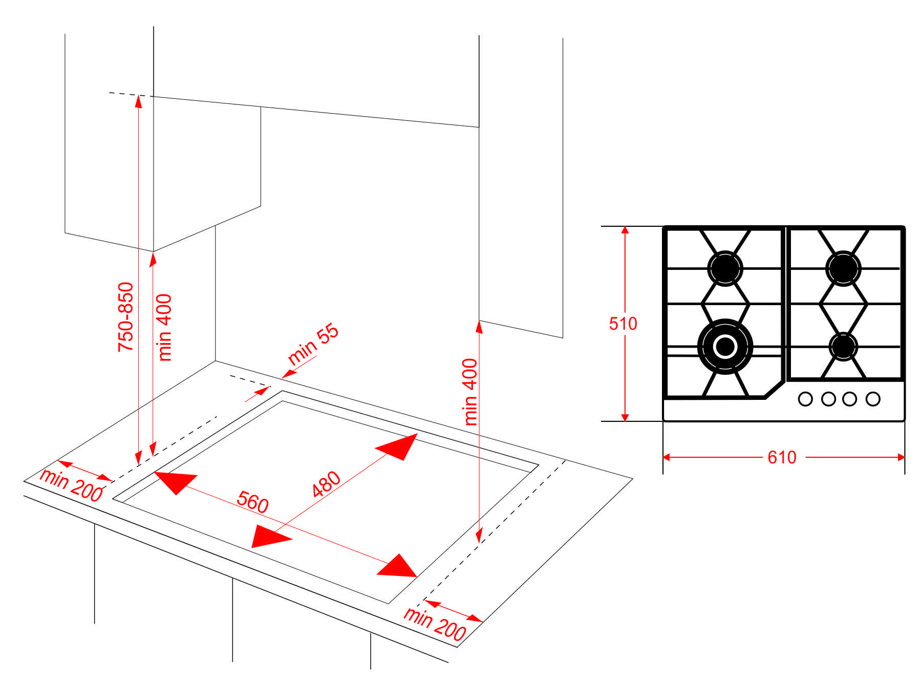 - WOK-конфорка: + Встроенный в ручки электроподжиг