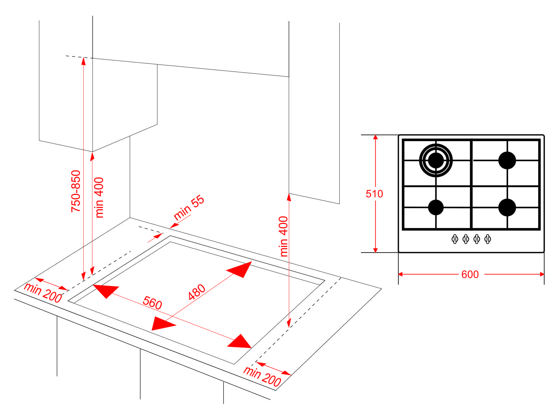 - WOK-конфорка: + Встроенный в ручки электроподжиг