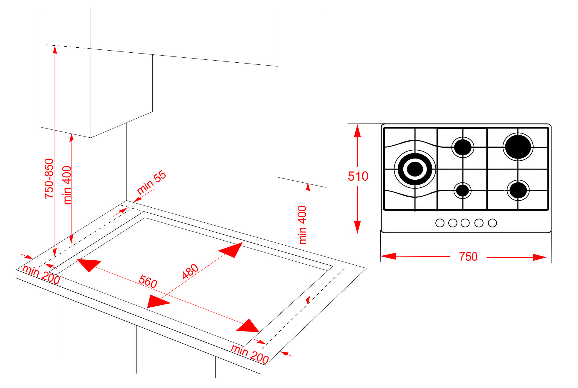 Газовая поверхность ATL 4 TB 75 BK MSTGF