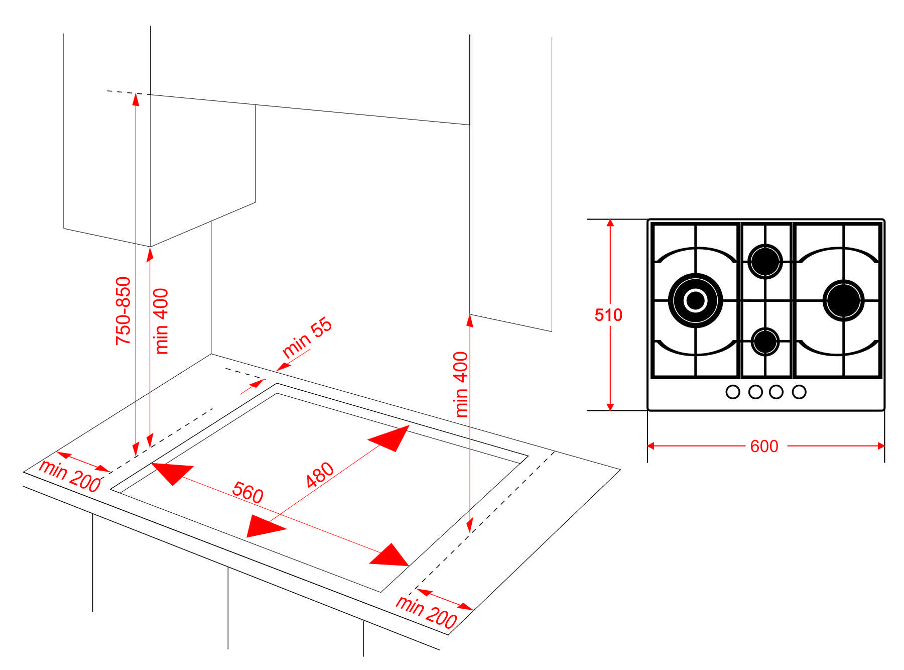 Газовая варочная панель ATL 4 TD 60 BG MSTGR, газ на стекле с чугунными решетками и мощной WOK-конфоркой. WOK-конфорка мощностью 3,8 кВт, создаёт сразу три контура пламени и позволяет осуществить быстрый нагрев посуды. В поворотные переключатели встроен электроподжиг, который позволит зажечь любую конфорку, а система газ-контроля предотвращает возможность случайной утечки газа в случае угасания пламени.